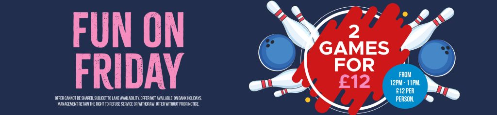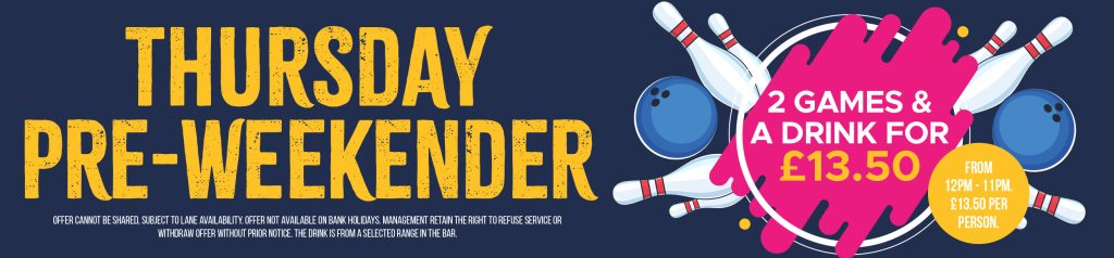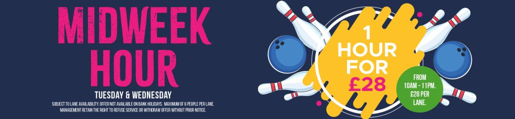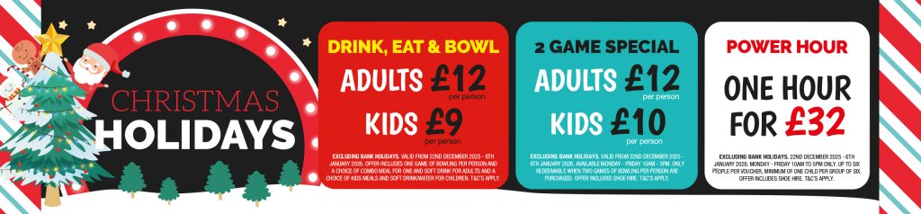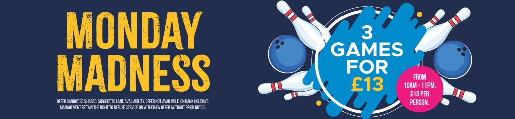 Please see our full price breakdown below, great bowling deals and the concessions we have available and to see our admission policy click Terms & conditions of entry and Data Protection Notice for more information. Take a look at the bottom of the page for our current offers and weekday bowling deals.